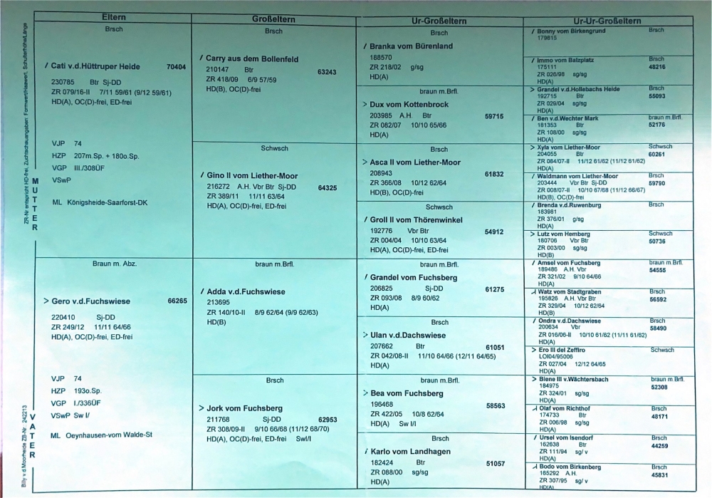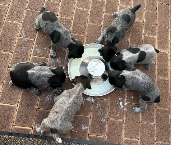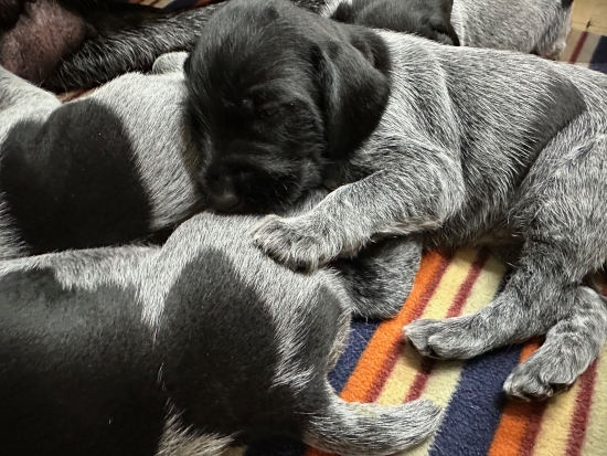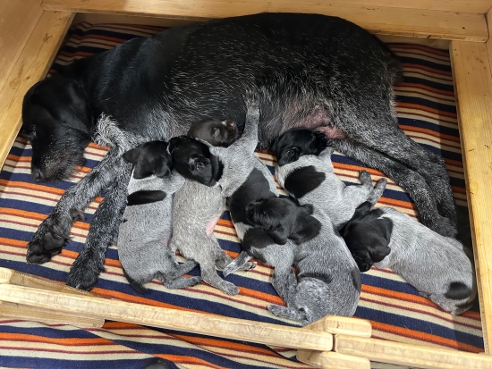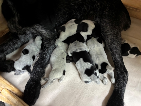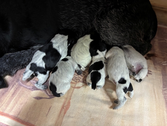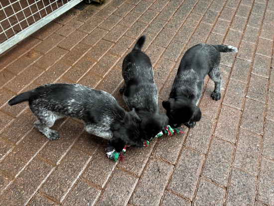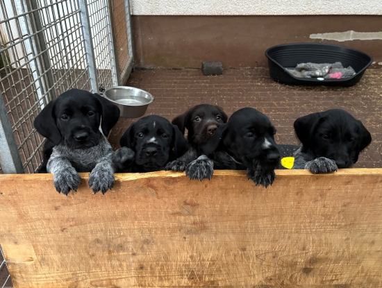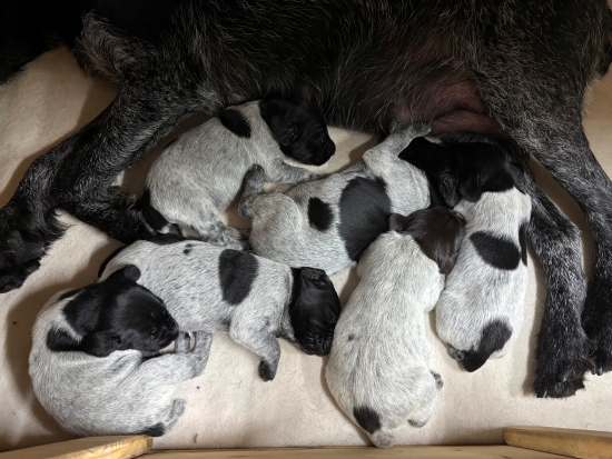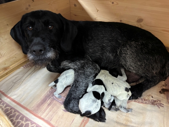 Der F-III Wurf ist da gew. 22.10.25 2/4 schwsch/ brsch aus: Xara II vom Breitenthal nach: Berry vom Oetternbach VJP 79 Pkt. sil/spl, HZP o. Sp. 199 Pkt. (lebende Ente 12), Hegewald 232 H. Pkt. (l. E. 12), VGP 328 Pkt. III Preis, HN, sg 9/ sg 11 HD-OCD-ED-frei |